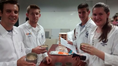 Foram realizados ensaios de teor de umidade pelo método da estufa, frigideira e queima com álcool, sendo estes dois últimos mais utilizados na prática do canteiro de obras. O professor explica que este teste de umidade é importante para determinar a quantidade de água a ser adicionada em uma mistura de concreto por exemplo, ou mesmo, para realização de compactação de obras de terras, como terraplanagem e na construção de base para pavimentação.