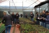Inicialmente eles visitaram o ponto de vendas, localizado na Linha Santa Fé Alta, às margens da Rodovia SC 163, e tiveram oportunidade de visualizar e receber informações sobre a produção de plantas floríferas sazonais. Este processo abrange desde a aquisição das plântulas enraizadas ou semeadas em bandejas por produtores especializados, as quais, no Viveiro, são transplantadas em bandejas de 15 células.