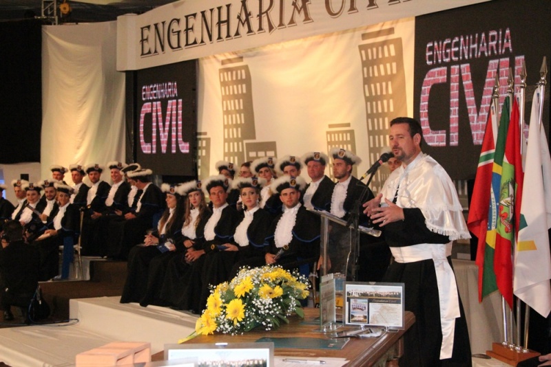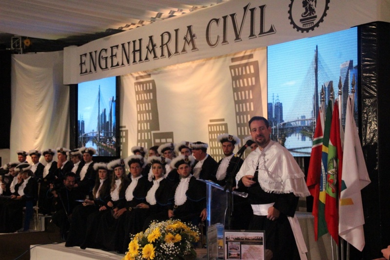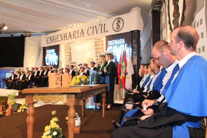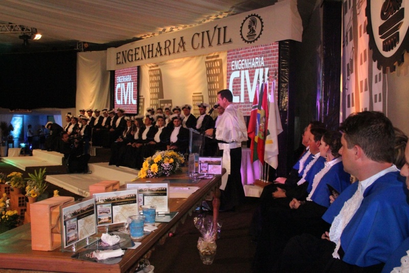 O evento teve início às 19 horas no Complexo Oktober de Itapiranga com a colação de grau, seguida da jantar e baile animado pela Orquestra Continentall. A cerimônia foi conduzida pelo Diretor Geral da FAI, Leandro Sorgato, e acompanhada pela Diretora de Ensino, Lenir Luft Schmitz; o coordenador do curso de Engenharia Civil e patrono a turma, Jackson Ilha; o paraninfo da turma, professor Maciel Welter; o amigo da turma, professor Jair Fiori Júnior; professores homenageados, Roberto Bieger, Mirdes Hengen e Júlio Cardinal; e o representante do Crea-SC, José Carlos Paiva Filho.