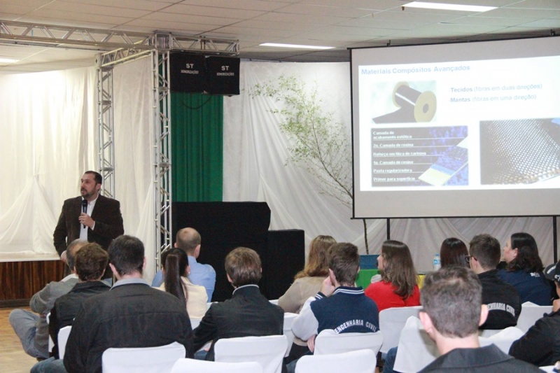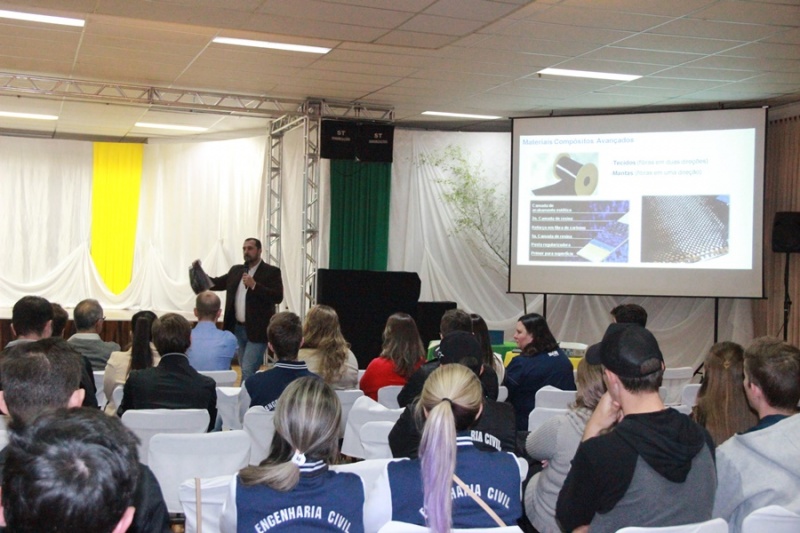 No dia seguinte a programação foi específica para os três cursos: Engenharia Civil participou de palestra sobre materiais compósitos avançados com o Engenheiro Civil Prof. Dr. Almir Barros da Silva Santos Neto (UFSM); Arquitetura e Urbanismo sobre as angústias impostas ao profissional de arquitetura no contexto atual, com o Arquiteto e Urbanista Prof. Me. Antonio Carlos Baccarin Rodrigues; Engenharia de Produção participou de palestra sobre os desafios para inovação e desenvolvimento de projetos, com o Engenheiro Químico Dr. Leonardo Artur Biasi - Innovasens Florianópolis.