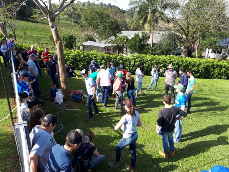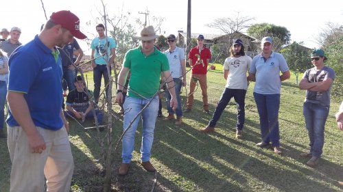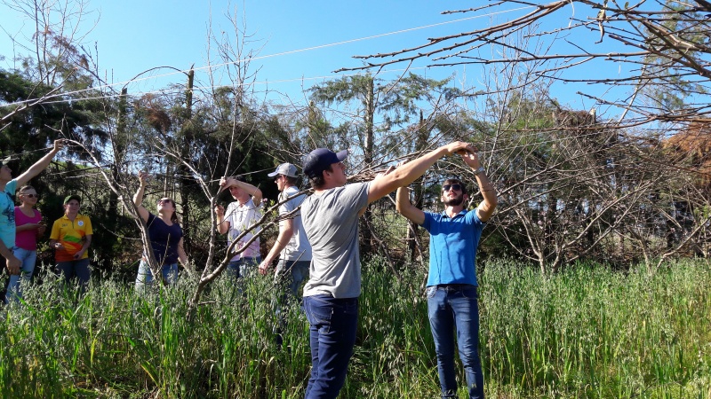 Assim, o professor Marciano Balbinot esteve com as turmas do 7º Semestre de Agronomia em propriedades, realizando atividades práticas pertinentes à época, envolvendo diversas espécies, a exemplo de citros, pêssego, pera, ameixa, figo e videira.