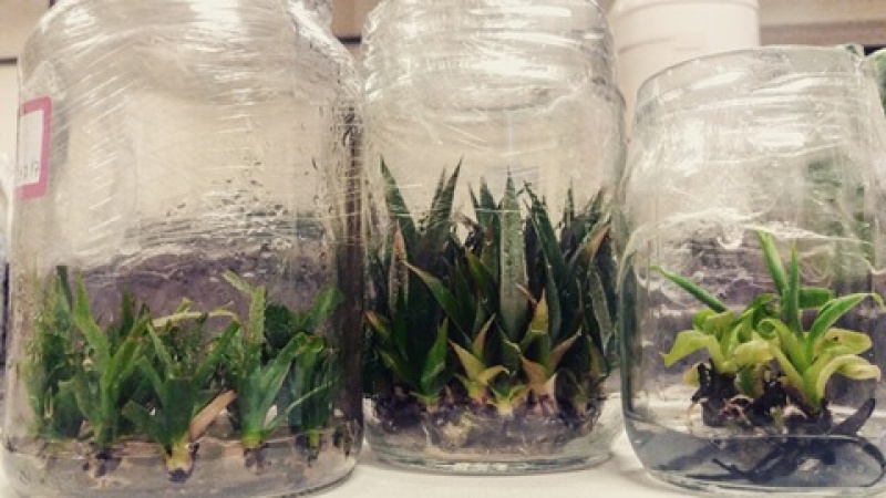 Ao longo do curso, nos laboratórios da Embrapa foi discutido sobre o processo de retirada de explantes para a inoculação em meio nutritivo e o processo de repicagem das mudas de orquídeas, mandioca, banana e abacaxi, que ficarão sob determinado período em uma sala específica para seu desenvolvimento com condições térmicas controladas, uma sala de crescimento.