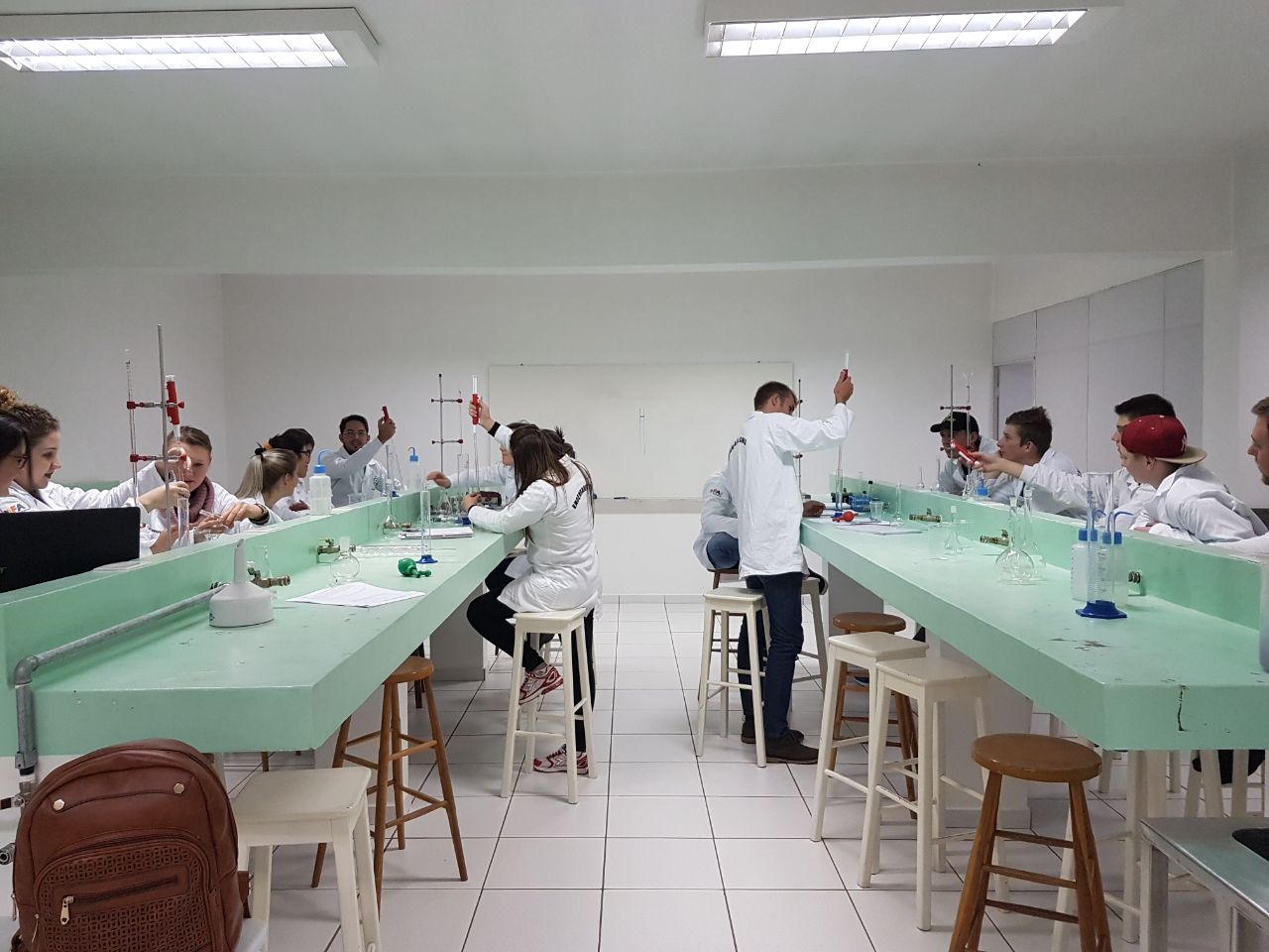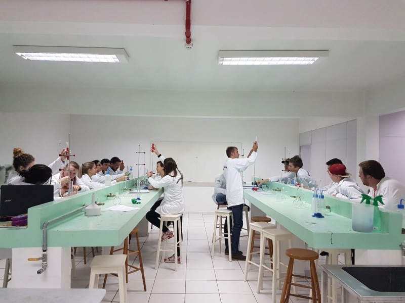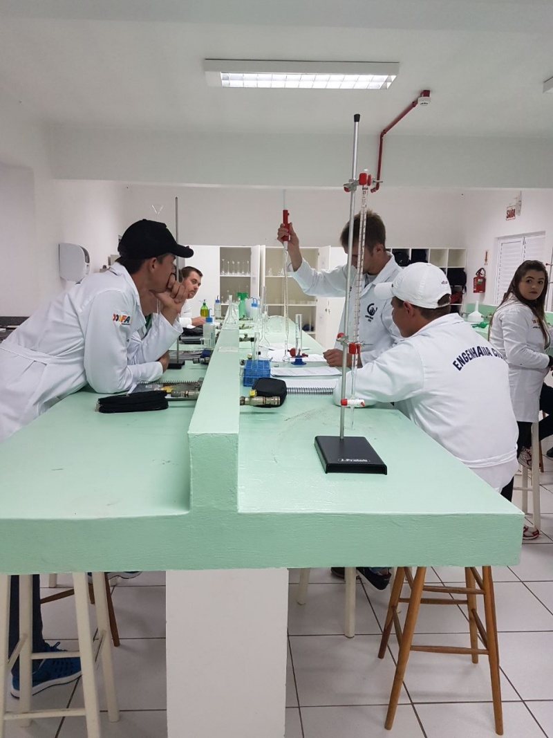 Os acadêmicos do segundo semestre de Engenharia Civil do Centro Universitário FAI participaram na última semana de atividades práticas no Laboratório de Química.