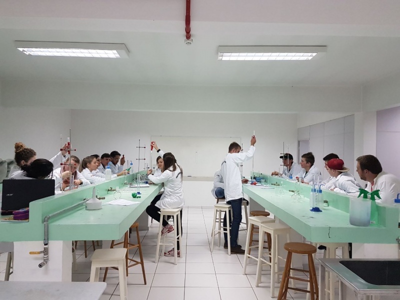 Segundo a professora da disciplina, Raquel Piletti, o objetivo foi familiarizar os acadêmicos com o ambiente, além de conhecer um pouco mais sobre as normas de segurança de laboratório, manuseio de reagentes e vidrarias, pesagem de amostras, preparo de soluções, entre outras técnicas que são de fundamental importância para a realização de um ensaio analítico aplicado na profissão do Engenheiro Civil.