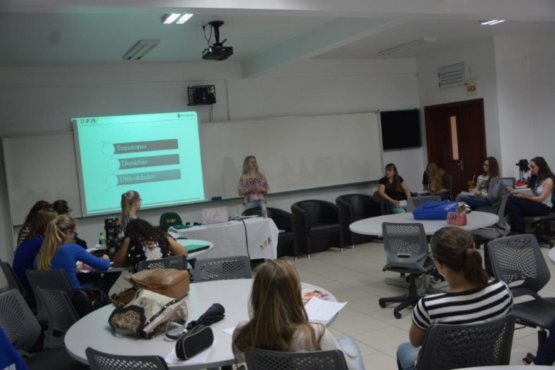 Na noite do dia 14 de setembro de 2017 foi desenvolvida a mesa redonda com socialização da pesquisa (TCC) e debate sobre processo do ensino aprendizagem, no curso da pedagogia, na disciplina: Neurociência e Educação, do 4° período, mediado pelo Professor Alain Baderha Kalema e a convidada egressa do curso de Pedagogia Micheli Hemsing que destacou pontos importantes para a formação acadêmica.