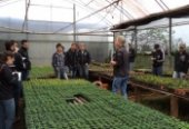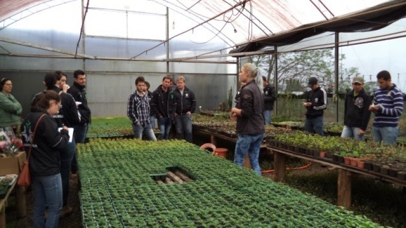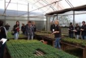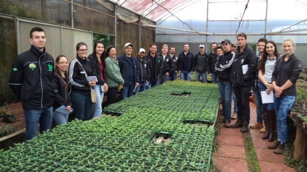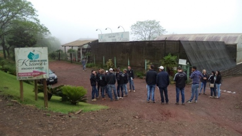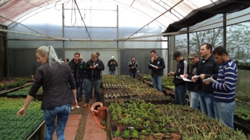 Inicialmente eles visitaram o ponto de vendas, localizado na Linha Santa Fé Alta, às margens da Rodovia SC 163, e tiveram oportunidade de visualizar e receber informações sobre a produção de plantas floríferas sazonais. Este processo abrange desde a aquisição das plântulas enraizadas ou semeadas em bandejas por produtores especializados, as quais, no Viveiro, são transplantadas em bandejas de 15 células.