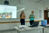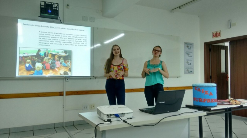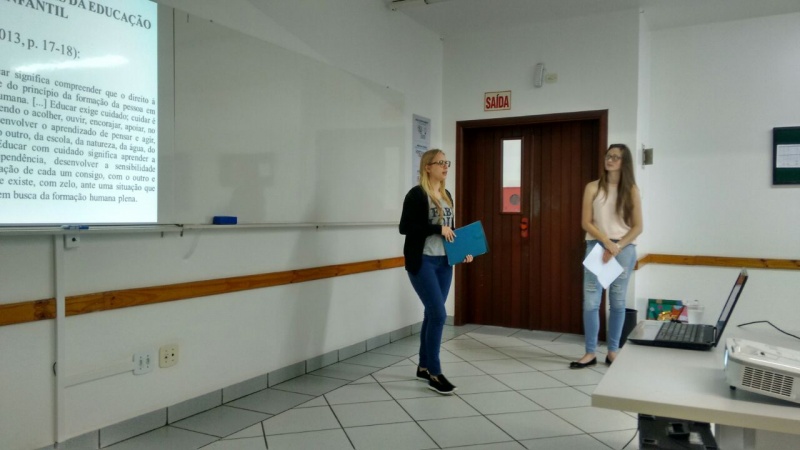As professoras Daiana Raquel Paschoali e Maria Preis Welter, parabenizam os acadêmicos pelas apresentações e reflexões em torno do processo pedagógico de ensino aprendizagem.