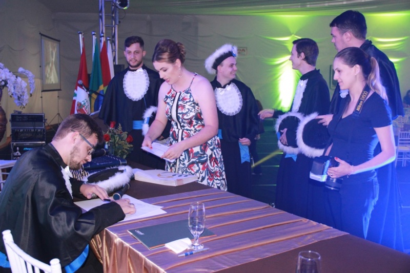 O evento teve início às 19 horas no Complexo Oktober de Itapiranga com a colação de grau, seguida da jantar e baile animado pela banda Inovação Arte Show. A cerimônia foi conduzida pela Diretora de Ensinol da FAI, Lenir Luft Schmitz, e acompanhada pelo coordenador do curso de Engenharia Civil e patrono a turma, Jackson Ilha; o paraninfo da turma, professor Jair Fiori Júnior; a amiga da turma, professora Mirdes Hengen; professores homenageados, Maciel Welter e Givanildo Martins de Quadros.