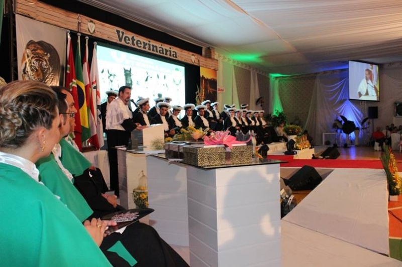 Na noite de sábado (18/01) teve início a temporada de formaturas da FAI Faculdades de Itapiranga com uma das turmas de Medicina Veterinária. A festa foi grande e de muita pompa no Complexo Oktober de Itapiranga organizada pelos 21 acadêmicos formandos. A colação de grau por presidida pelo diretor geral Leandro Sorgato e acompanhado pela diretora de ensino Lenir Schmitz; o coordenador do curso Sandro Machado; o patrono da turma, professor Giovane Krolikowski; a paraninfa da turma, professora Fernanda de Souza Rosa; o professor homenageado, Fabrício de Vargas Arigony Braga; o amigo da turma, professor Lazie Manoel de Col. Estiveram ainda presentes os professores Marcelo e Tiago, e o ex-coordenador Alexandre Abreu, além do convidado especial, vice-prefeito de Itapiranga, Inácio Oswald.