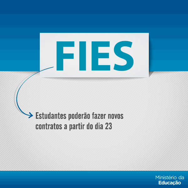O Portal do Ministério da Educação informou nesta quinta-feira (12) que será aberto no próximo dia 23 de fevereiro o sistema para novos contratos do Fundo de Financiamento Estudantil (Fies). O Sistema Informatizado do Fies (SisFies) ficará aberto até o dia 30 de abril. As inscrições poderão ser realizadas no portal do programa: http://sisfiesportal.mec.gov.br/